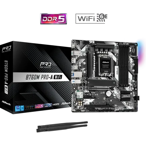 Model: B760M Pro-A WiFi Supported CPU: 14th, 13th & 12th Gen Intel Core Processors (LGA1700) S...
