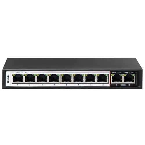 Model: DES-F1010P-E PoE Ports: 8x 10/100 Mbps Fast Ethernet PoE+ Ports Uplink Port: 2x 10/100 Mbps...